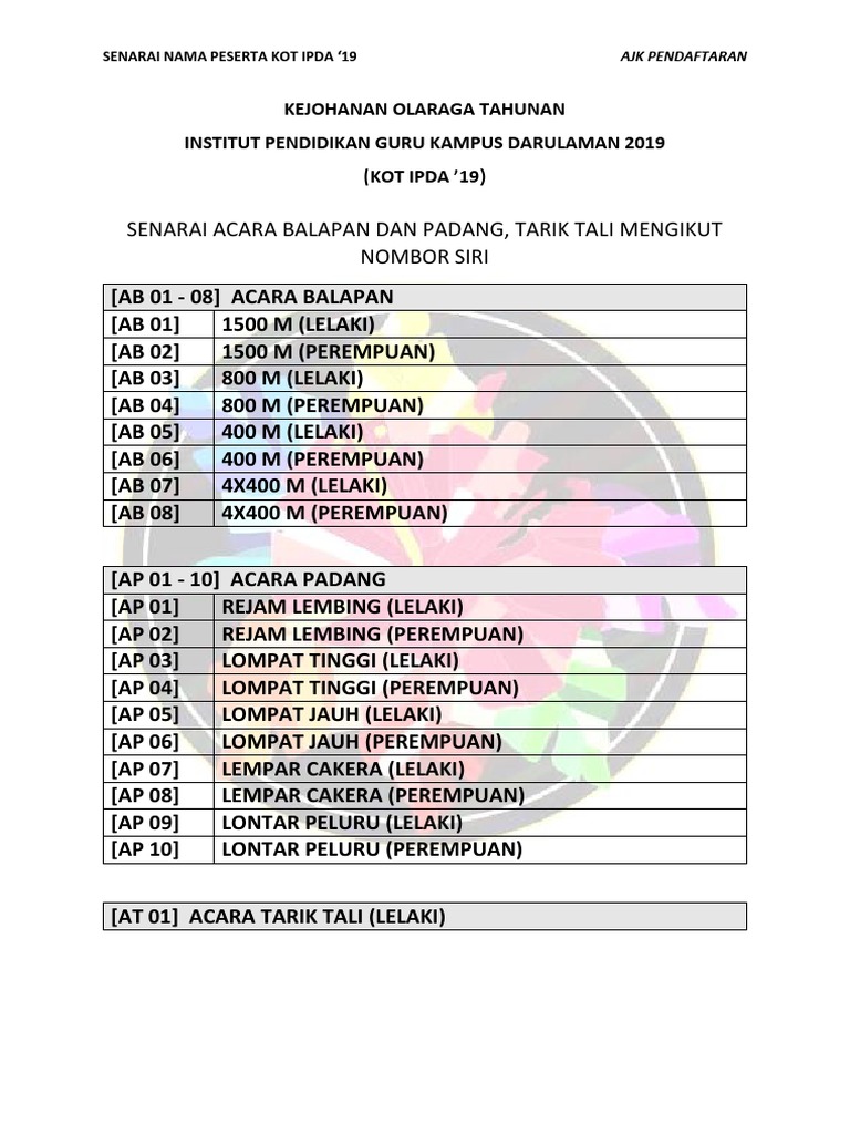 BORANG KETUA HAKIM ACARA NO. Pada 1935 Jesse Owens mencatatkan. Balapan dan Padang Olahraga di Sekolah ini akan dapat memudahkan pihak sekolah untuk merencanakan dan mengatur aktiviti sukan.
